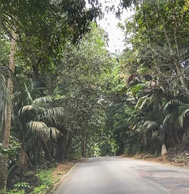 On our way to the airport, we passed through UNESCO World Heritage-listed Vallee de Mai, which is one of only two places in the world where the unique coco de mer coconut grows. (The other place is Curieuse Island, where we visited yesterday.). Time didn’t allow us to stop to do a hike in the park, but these couple of shots from the road through the park give an idea of the foliage..